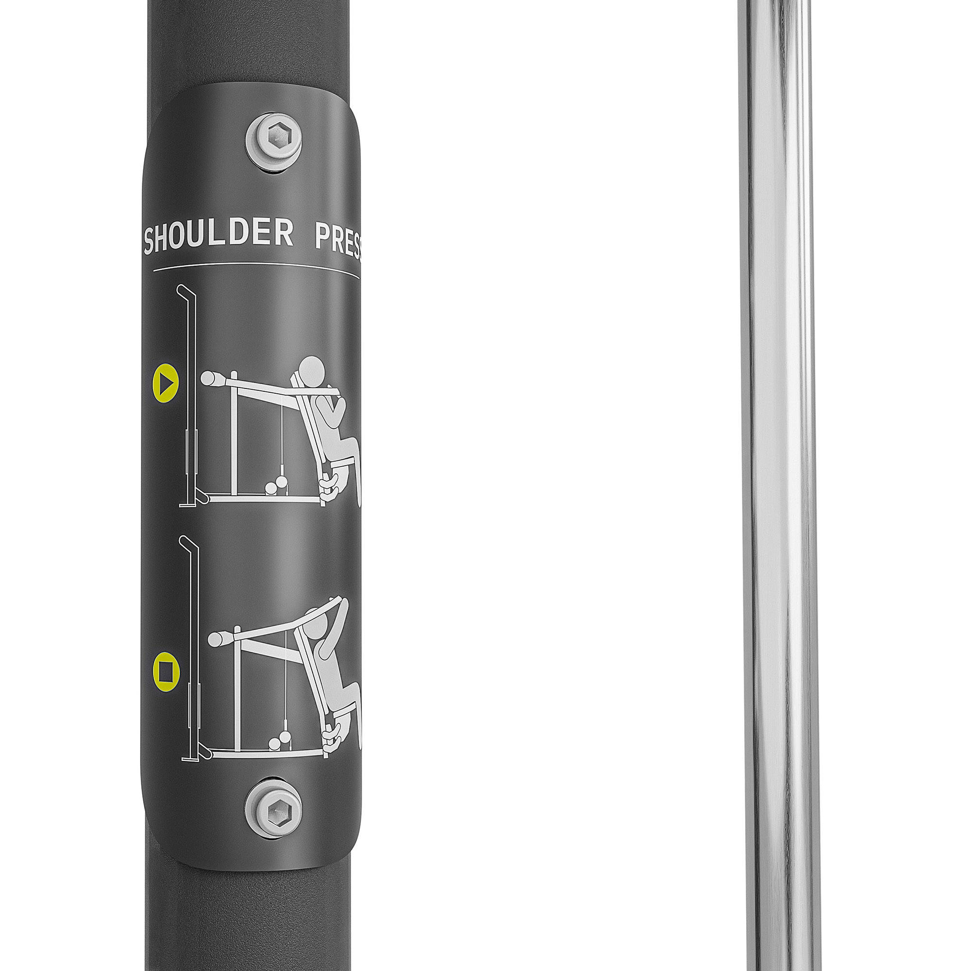 La presse à épaules fait partie du système Upform F-line. Elle permet d'entraîner tous les groupes musculaires à tous les niveaux.