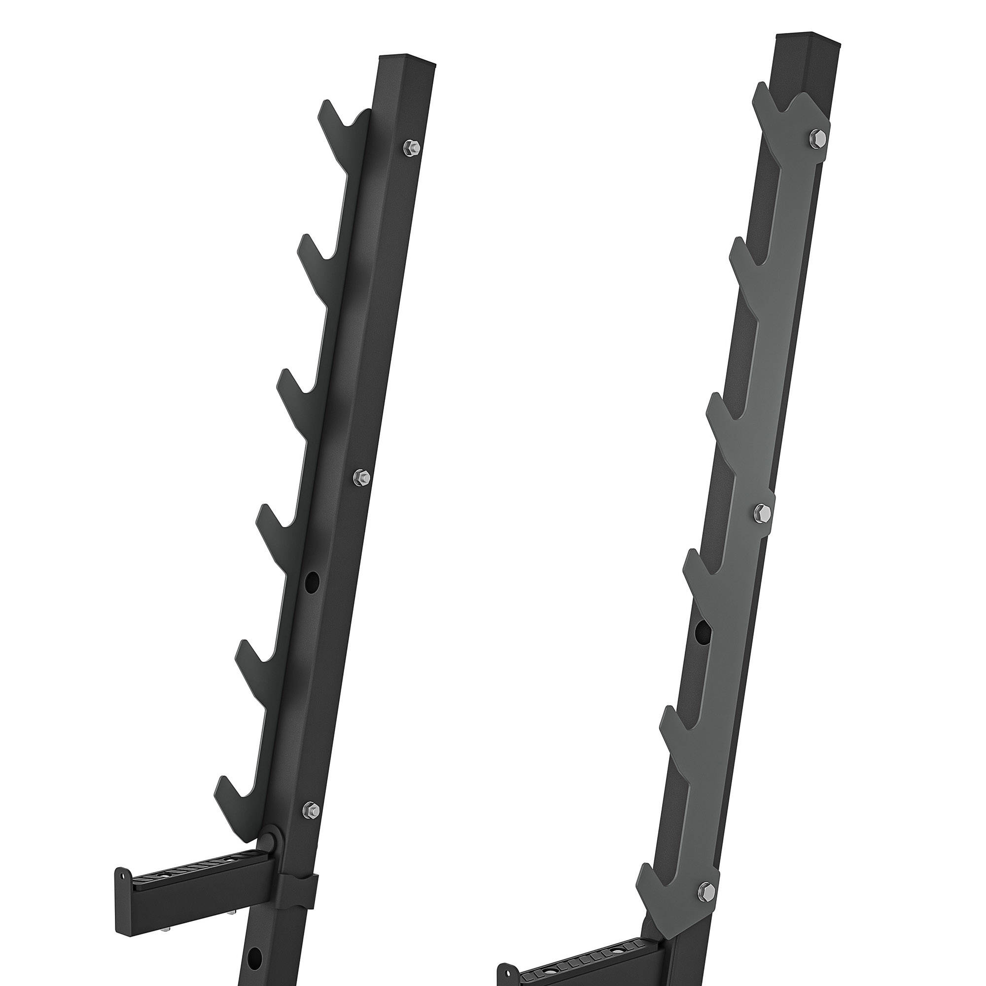 - 6 niveaux de crochets pour poser l'haltère – cela vous permettra d'effectuer une variété d'exercices et de jeter l'haltère en toute sécurité si vous ne pouvez pas effectuer un mouvement complet ;