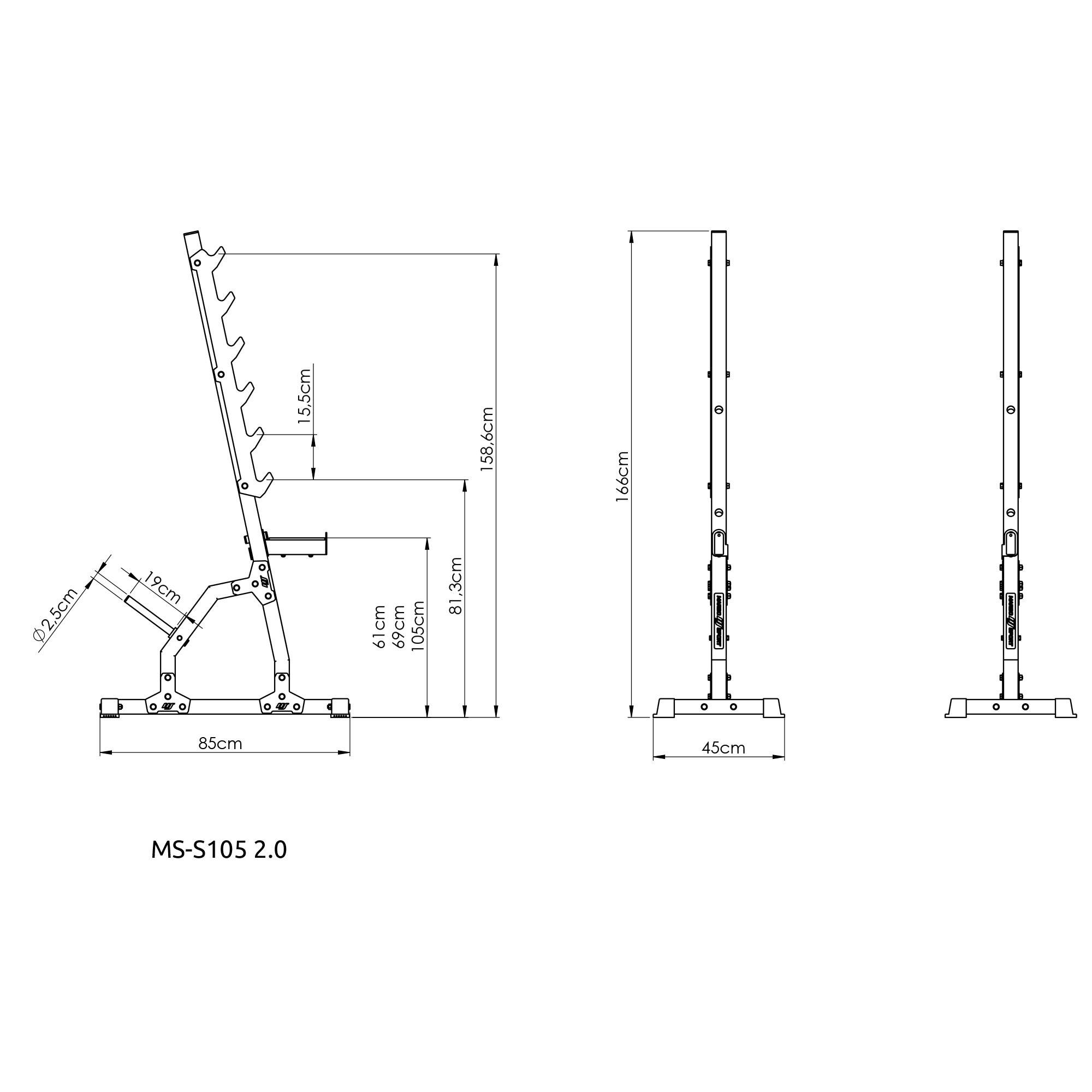 La conception des supports MS-S105 2.0 a été perfectionnée pour la stabilité et la fonctionnalité. Grâce à eux, vous pourrez effectuer des entraînements avec des haltères à n'importe quel niveau de compétence.