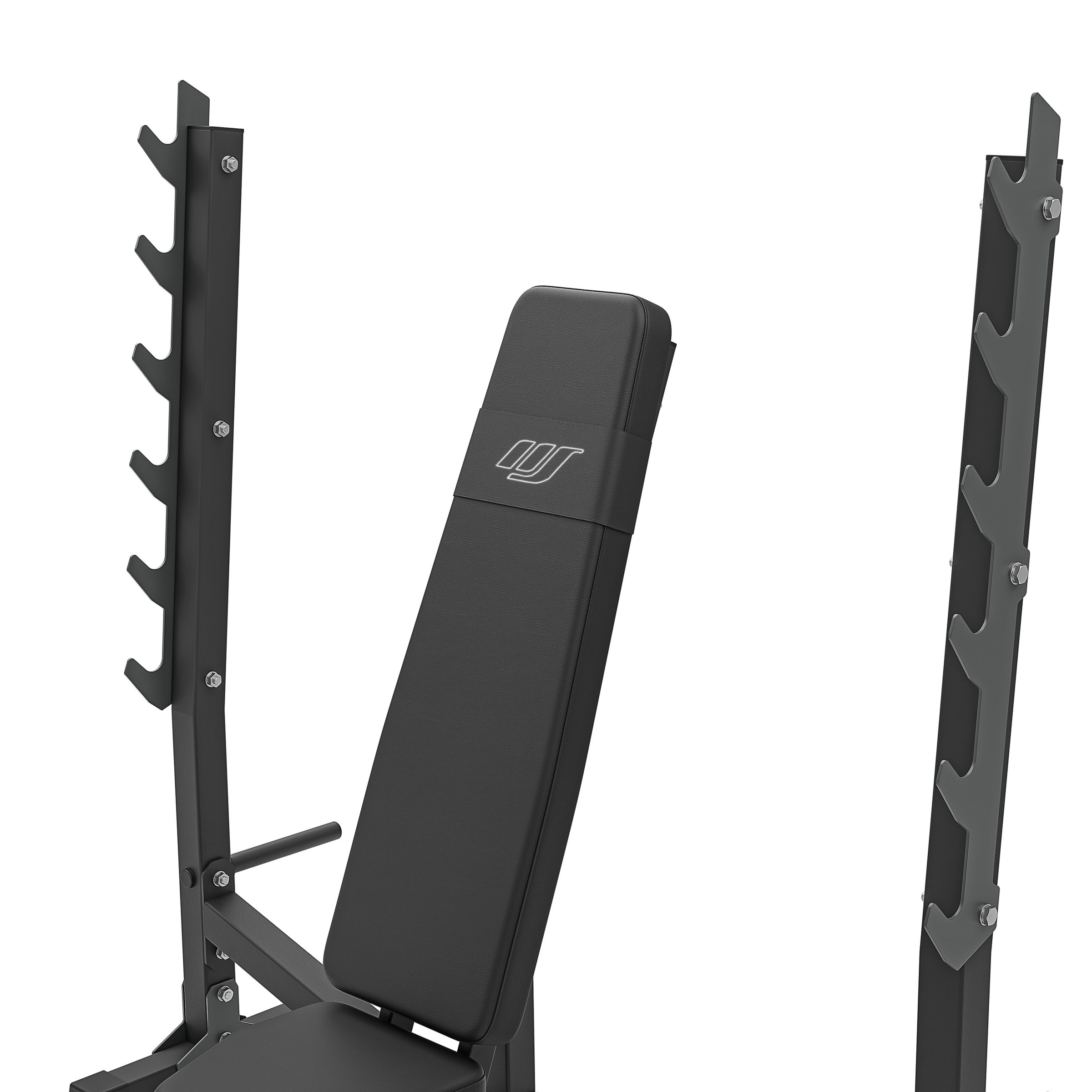 Grâce aux 6 niveaux de crochets de repos de l'haltère, vous pouvez régler la position de départ optimale tout en assurant la sécurité et le confort pendant votre entraînement. Les crochets sont fabriqués à partir de solides profilés en acier qui sont résistants non seulement à toute abrasion et tout dommage potentiels lors de la pose du griffon, mais aussi aux charges lourdes.